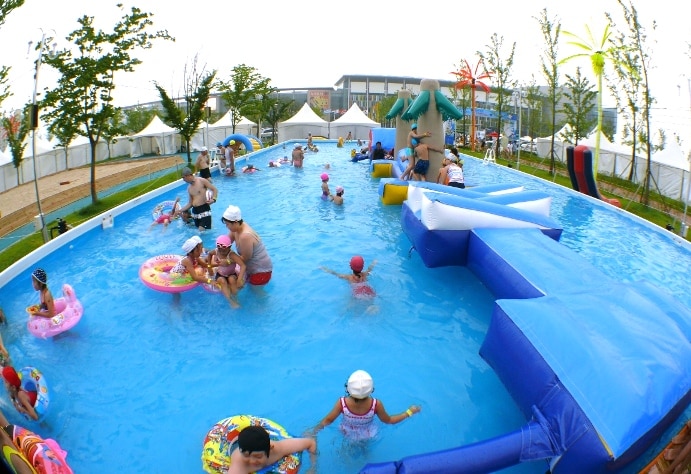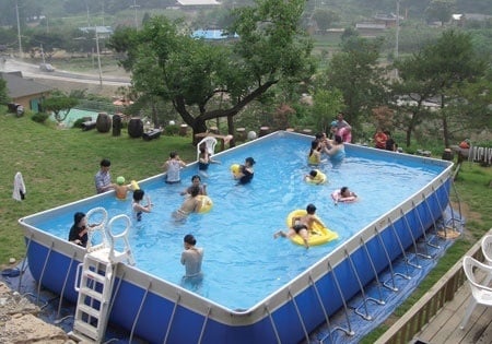 Paradise Above Ground Pools are the most durable above ground pools available on the market today. With an extra thick, puncture resistant liner, and a heavy duty powder coated galvanized steel frame, these pools can stand up to any conditions and uses. Great for families with dogs, and for commercial use as well. Paradise above ground pools set up in about 2 hours (not including fill time) and are only available at: